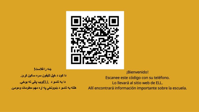 - Print welcome flyers with a QR code to the EL website in English and relevant languages. The QR code will take families to the EL website where the page can be translated as needed.