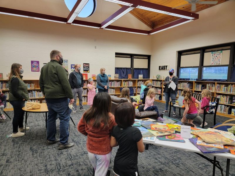 At our Literacy Night, we challenged parents to share their version of their child’s favorite wordless picture books to compare their stories. This was a successful portion of our project as parents and children chose books and found a place to read around the library.