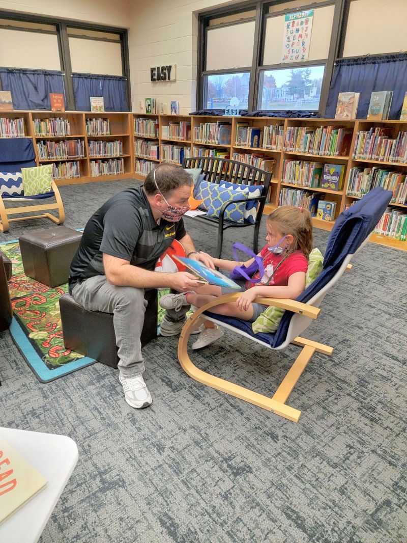 Reading Buddies - Friday, November 5: Our building principal joined the experience in the role of classroom helper. He gained first-hand experience with our Reading Buddies Collaboration as he interacted with a pair of students on the carpet. It is beneficial for all students to see the principal within the classroom setting and even more vital to have positive interactions with him outside his office. We hope he can join us more often and even be a guest reader in each class.